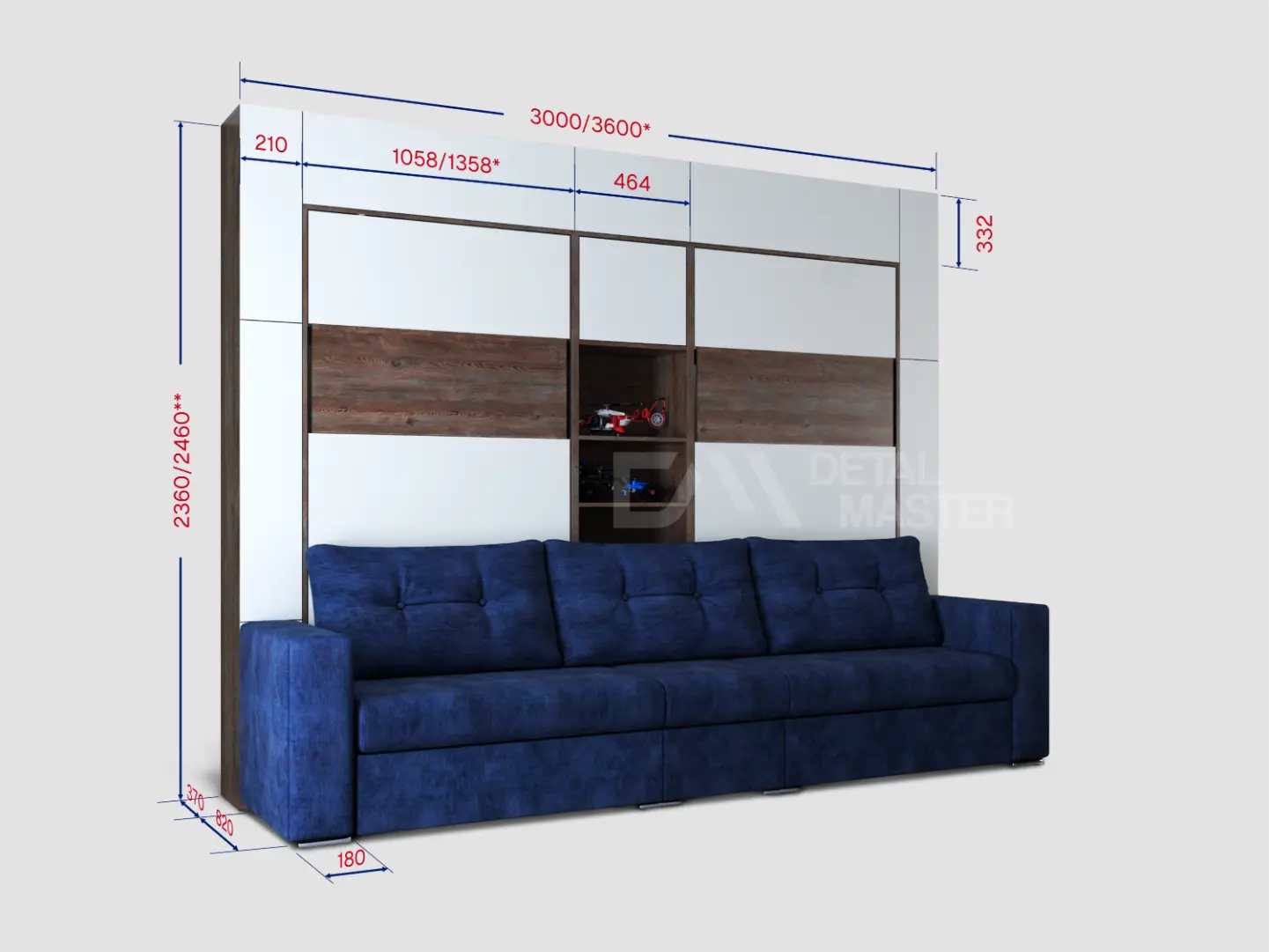 Дополнительные опции, такие как: освещение, зарядное устройство, розетки, мягкое изголовье, матрас, мягкий борт - не входят в стоимость шкаф-кровати "Twin". Вы всегда можете самостоятельно их добавить в опциях или написать менеджеру при оформлении заказа.